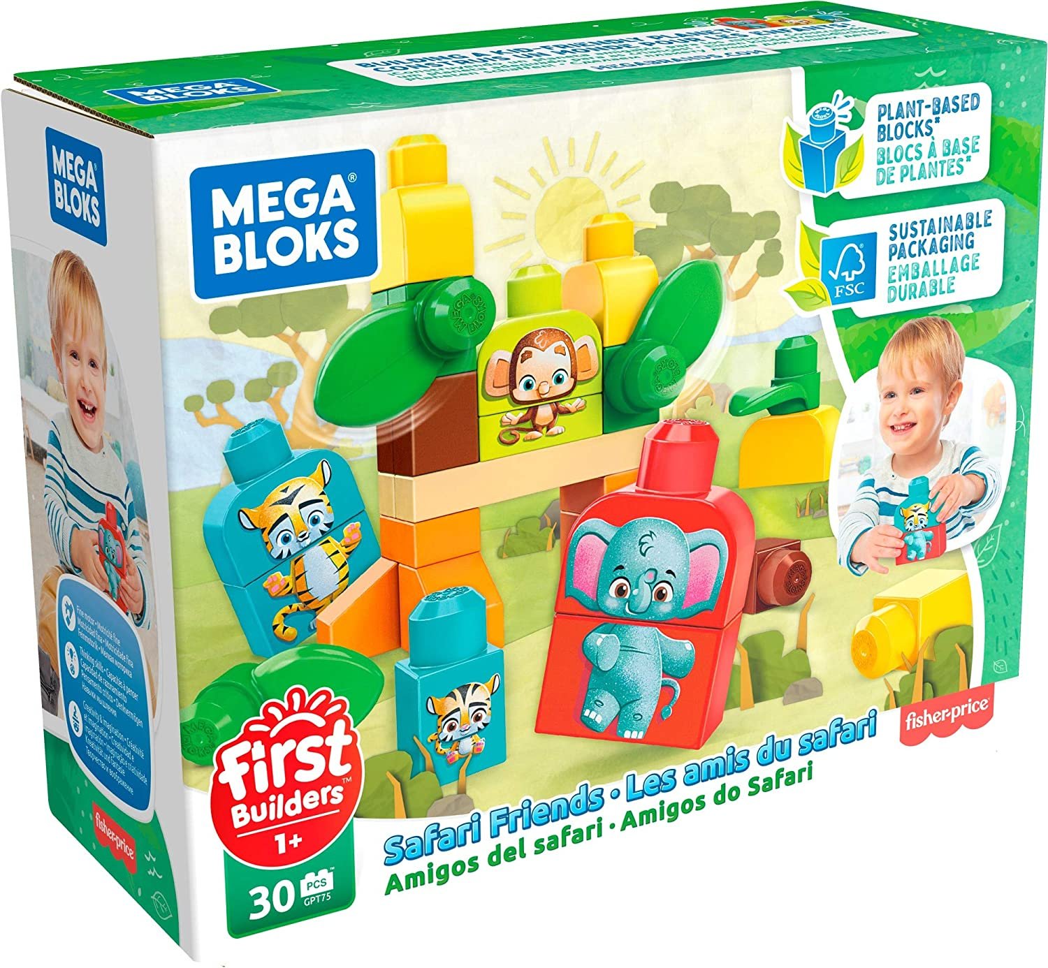Seu filho vai adorar construir uma aventura de safári, combinando e empilhando blocos para construir um tigre, um elefante e um macaco. Ou observe-os desenvolver sua criatividade enquanto misturam e combinam peças para criar seus próprios animais exclusivos.
