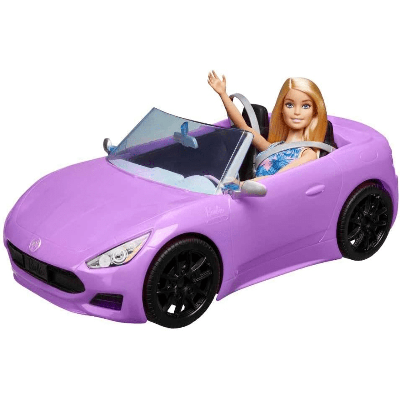 Conteúdo da embalagem: 1 Boneca Barbie e 1 Carro conversível roxo.