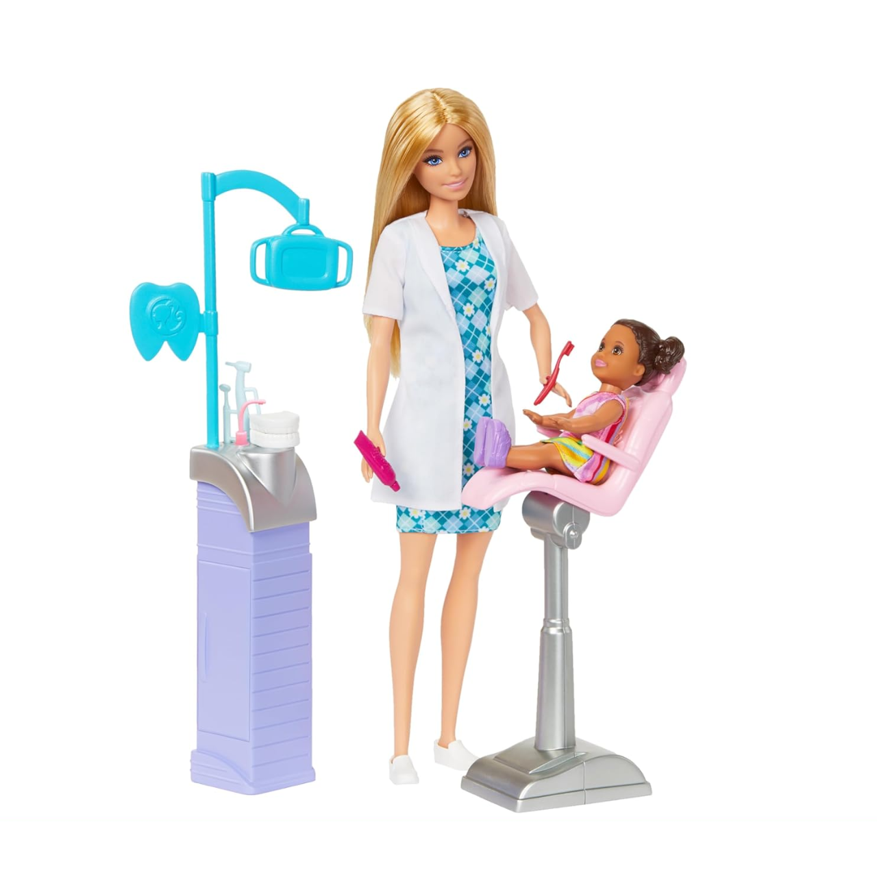 Com cores suaves, detalhes encantadores e infinitas possibilidades de histórias, o conjunto Barbie Dentista é mais do que um brinquedo é um convite para cuidar, aprender e se divertir enquanto se descobre o mundo da odontologia.