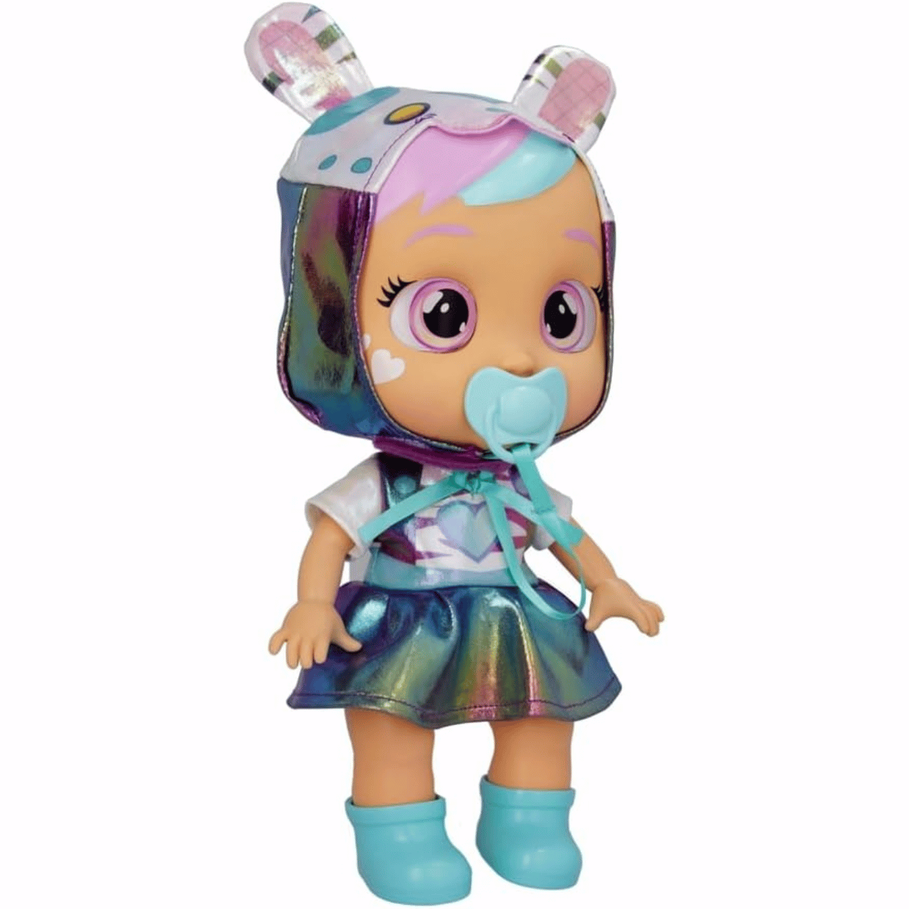 A boneca Cry Babies Stars Jane chora lágrimas de verdade e emite sons iguais ao de um bebê! Tire a chupeta e ela começa a chorar com sons e lágrimas iguais a um bebê de verdade. Dê a chupeta e ela vai parar de chorar instantaneamente.