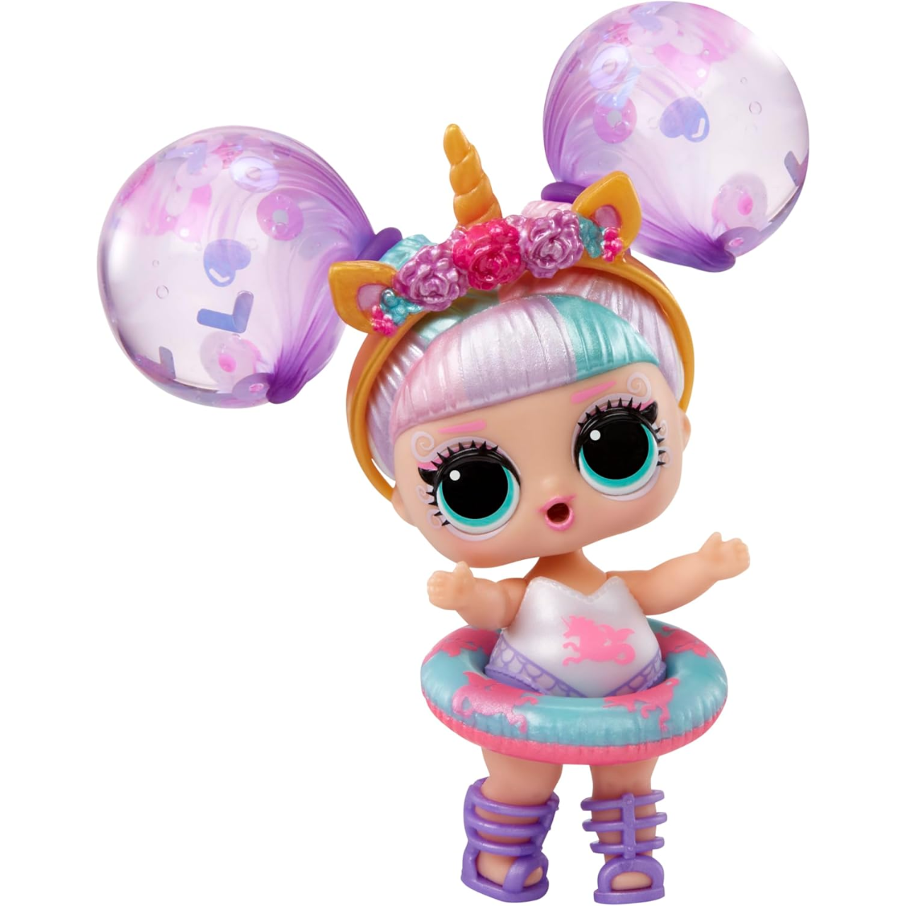 A coleção inclui 9 personagens favoritos, cada um com penteados e acessórios exclusivos. Os balões podem ser enchidos com o adaptador, mamadeira ou torneira, e os balões macios reutilizáveis com glitter tornam a brincadeira ainda mais divertida.