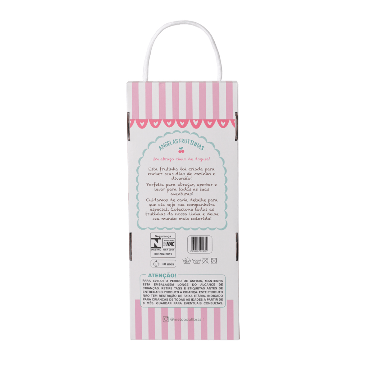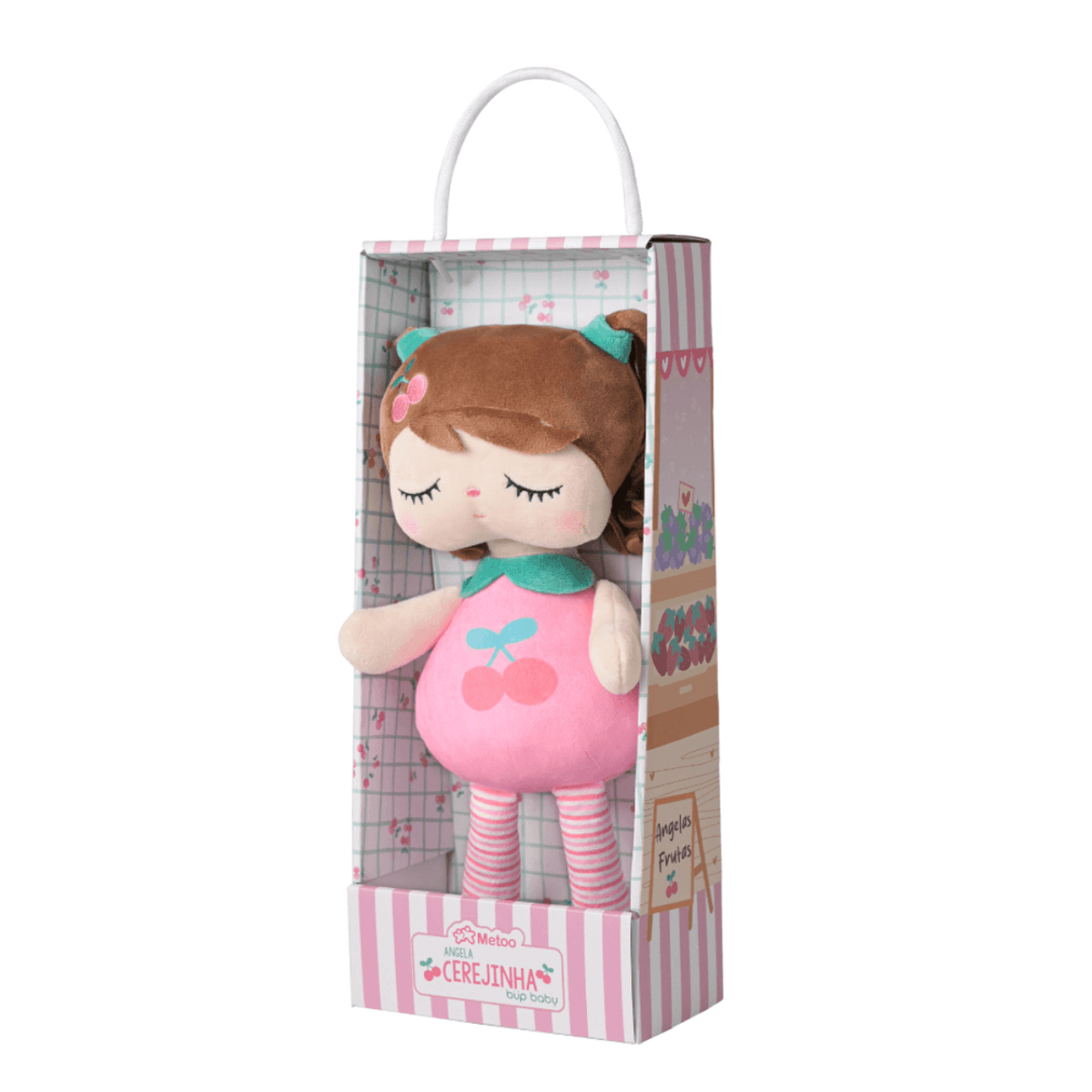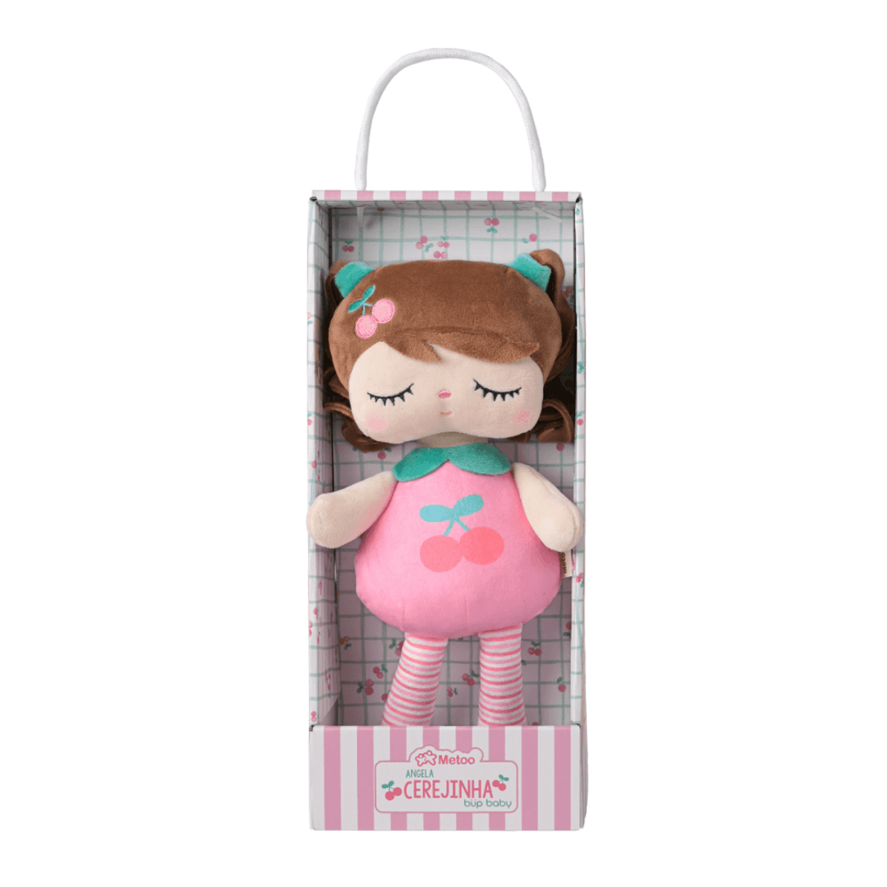 Conteúdo da embalagem: 1 Boneca Metoo Angela Cerejinha de aproximadamente 33 cm.
