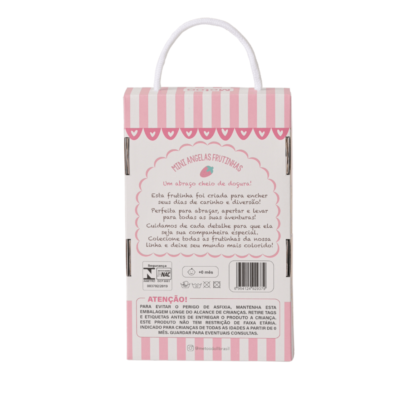 Conteúdo da embalagem: 1 Boneca Metoo Mini Angela Frutas Moranguinho de aproximadamente 20 cm.