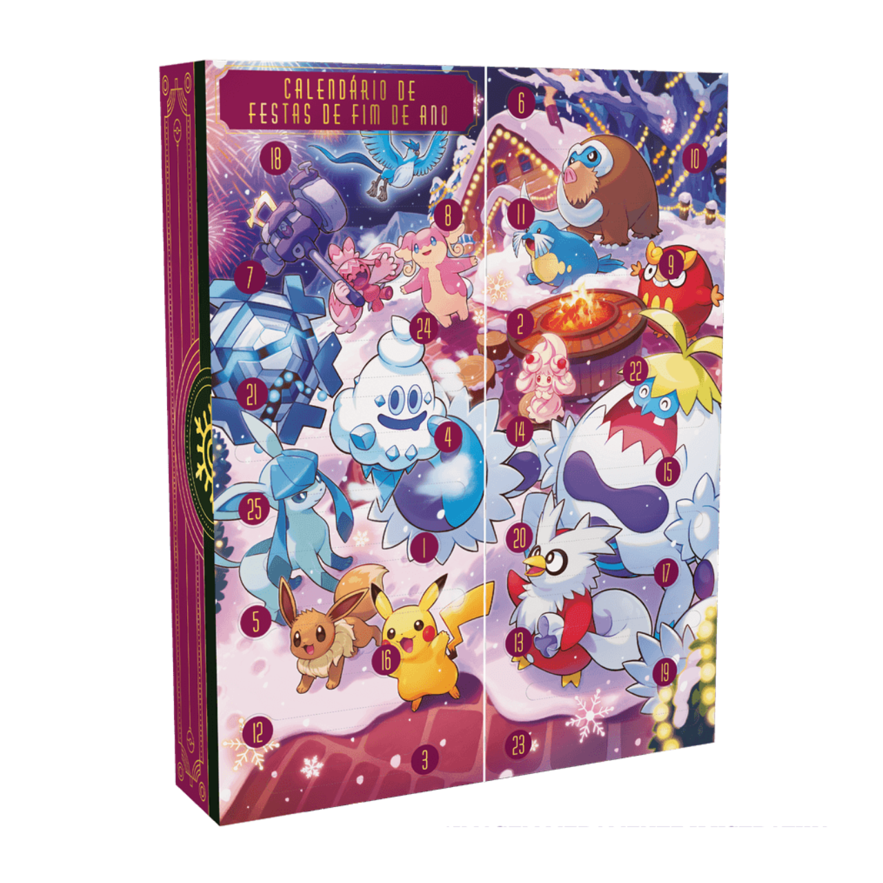 - O calendário inclui pacotes de booster, moedas e outros itens exclusivos de Pokémon, permitindo aos colecionadores expandir sua coleção com itens raros e especiais.