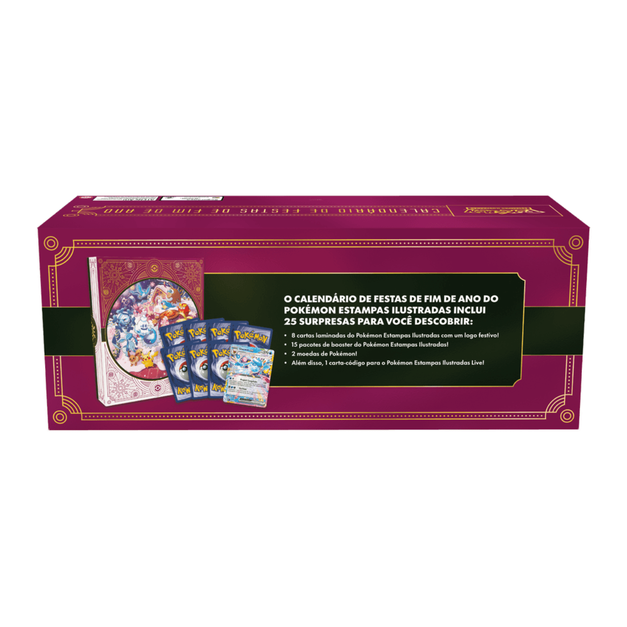 Celebre o espírito do fim de ano com o Calendário de Festas de Fim de Ano do Pokémon Estampas Ilustradas! São 25 dias de pura diversão, com surpresas diárias que vão deixar qualquer fã de Pokémon em êxtase. A cada dia, você vai descobrir uma nova surpresa Pokémon, desde pacotes de booster com cartas raras, até moedas exclusivas, e muito mais! Cada compartimento do calendário esconde uma nova emoção, levando você por uma jornada cheia de magia e mistério com seus Pokémon favoritos.