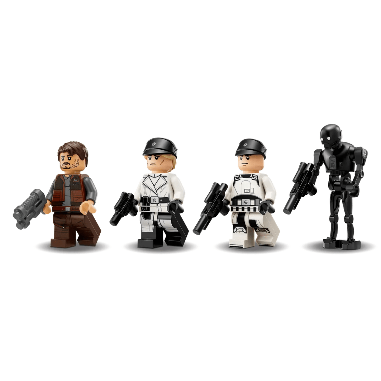 Inclui 3 minifiguras: Cassian Andor, Dedra Meero e um Agente Tático do ISB , além da figura do icónico droide K-2SO, e diversos acessórios para estimular a brincadeira criativa. Um compartimento funcional permite transportar passageiros e mercadoria, tal como na série.