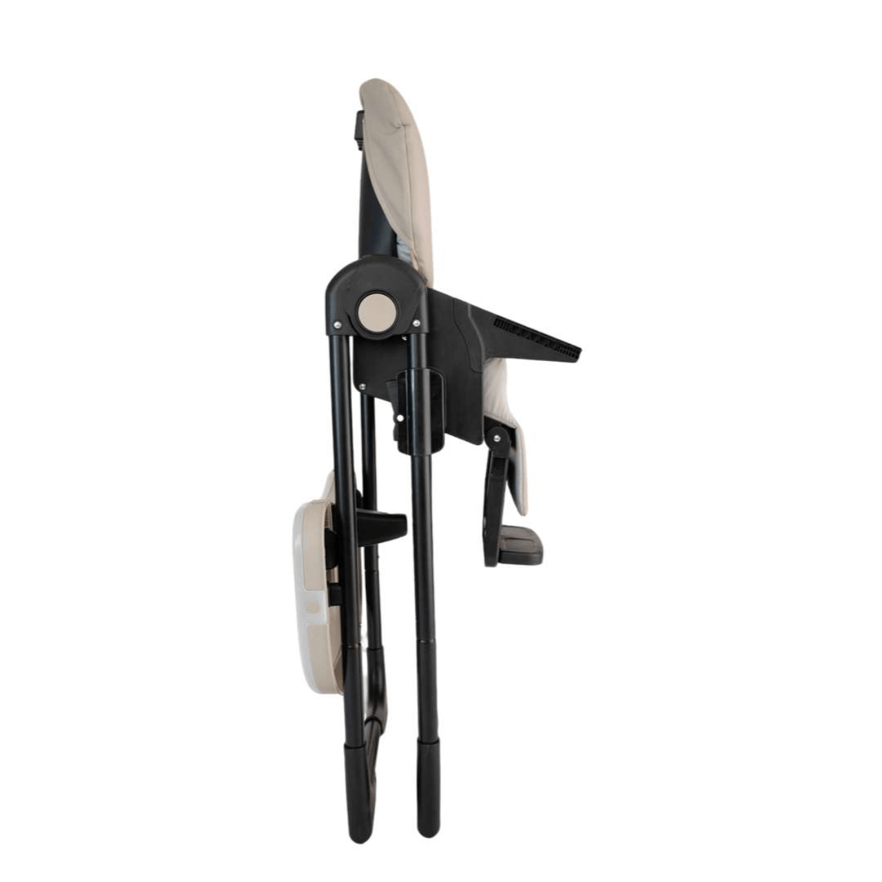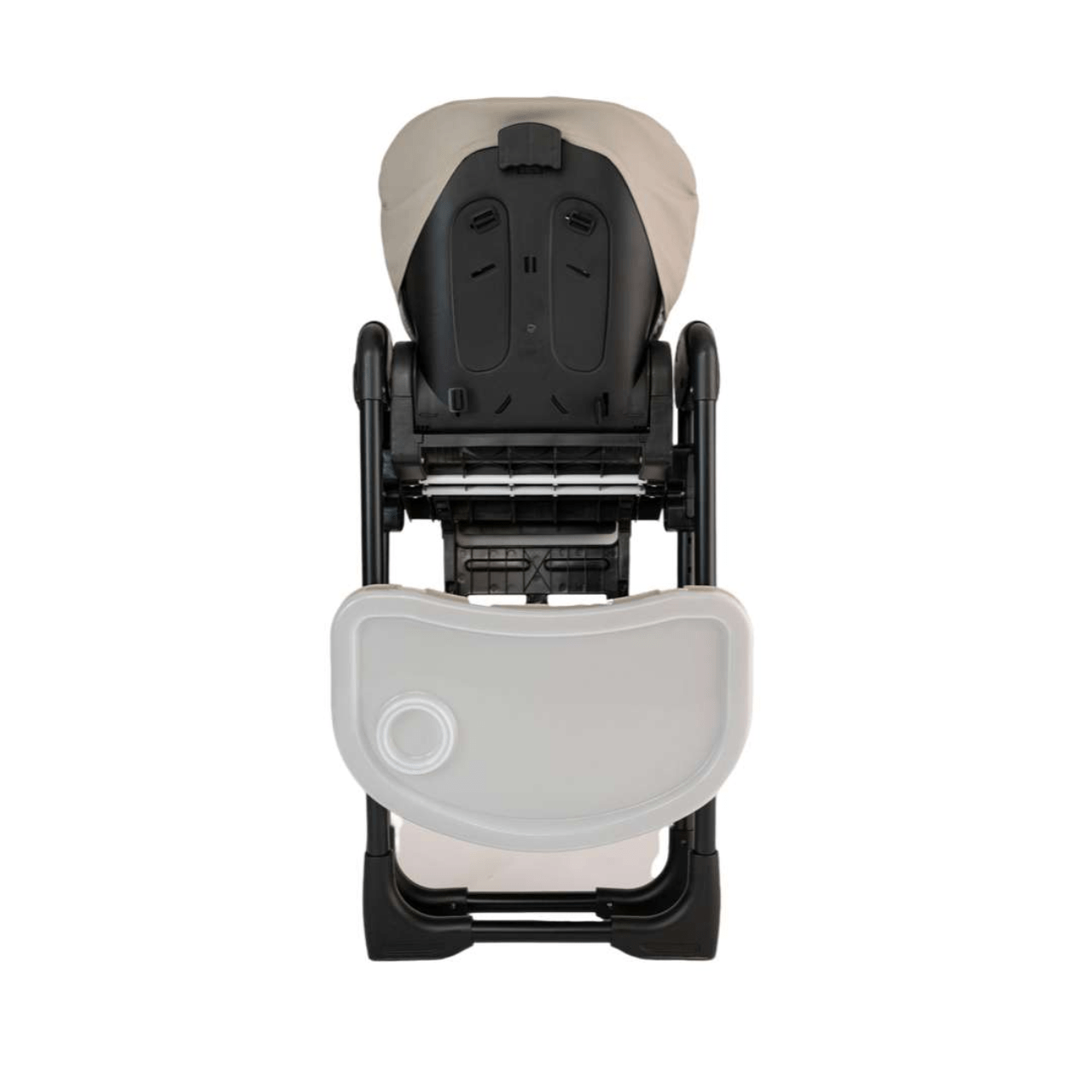 O design compacto e funcional garante que a cadeira ocupe pouco espaço, sem comprometer o conforto. Quando a bandeja é removida, a cadeira pode ser posicionada diretamente na mesa de refeição, proporcionando uma aproximação ideal e incentivando a interação durante as refeições em família.