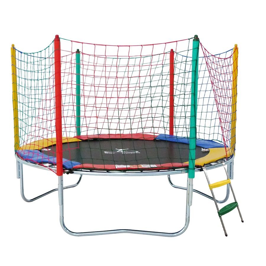 Proteção de molas com revestimento PVC + PE colorido e impermeável com manta expandida área interna. Lona de salto em polipropileno com proteção UV, sem emendas e com referência no centro, facilitando a montagem e utilização do produto.