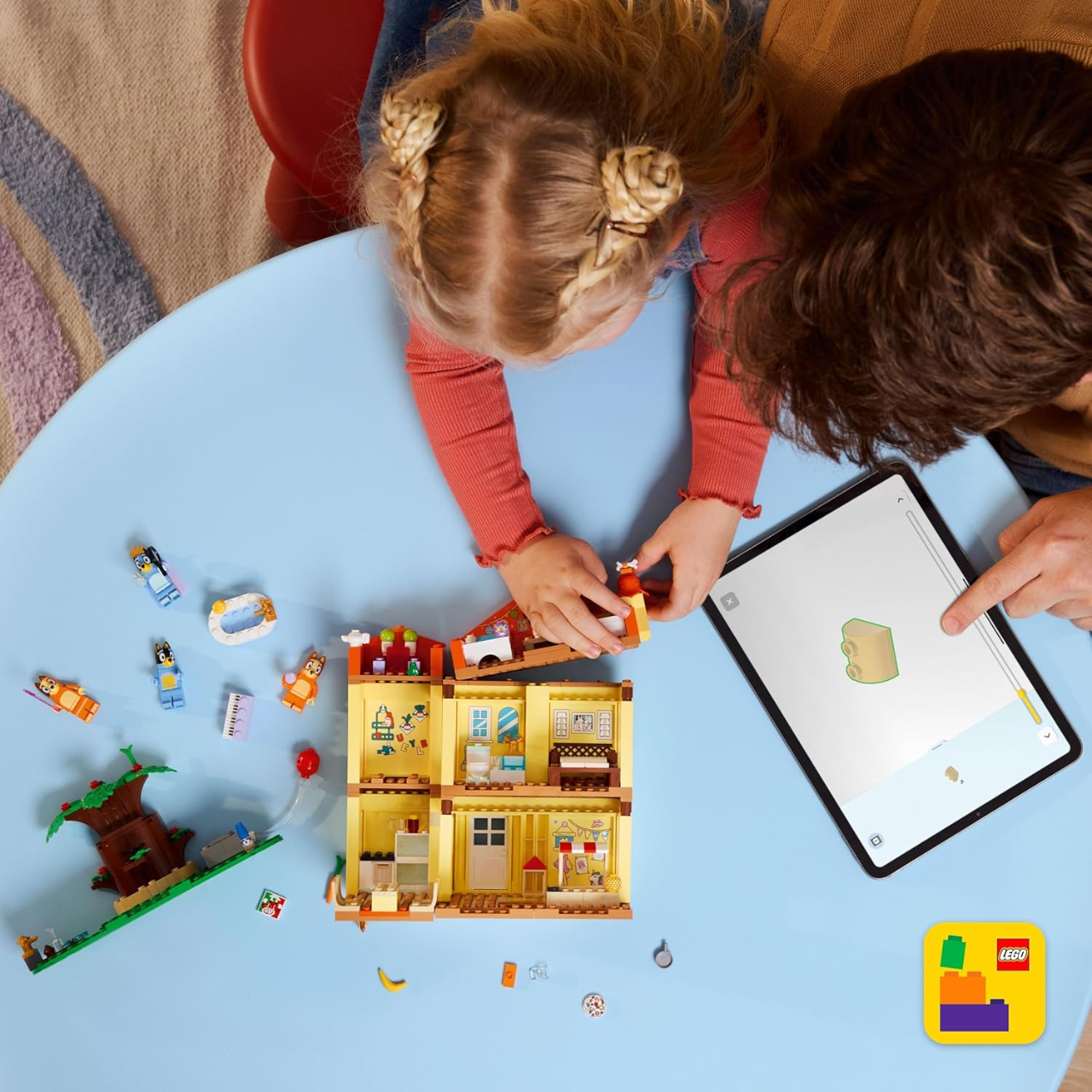 A casa modular é composta por diversos cômodos destacáveis, que permitem às crianças montar, reorganizar e explorar cada ambiente do jeito que quiserem. O conjunto inclui as minifiguras de Bluey, Bingo, Chilli e Bandit, além de uma grande variedade de acessórios inspirados no desenho animado, como capa de arco-íris, varinha mágica, piano, casa de bonecas, trono da rainha, entre outros.
