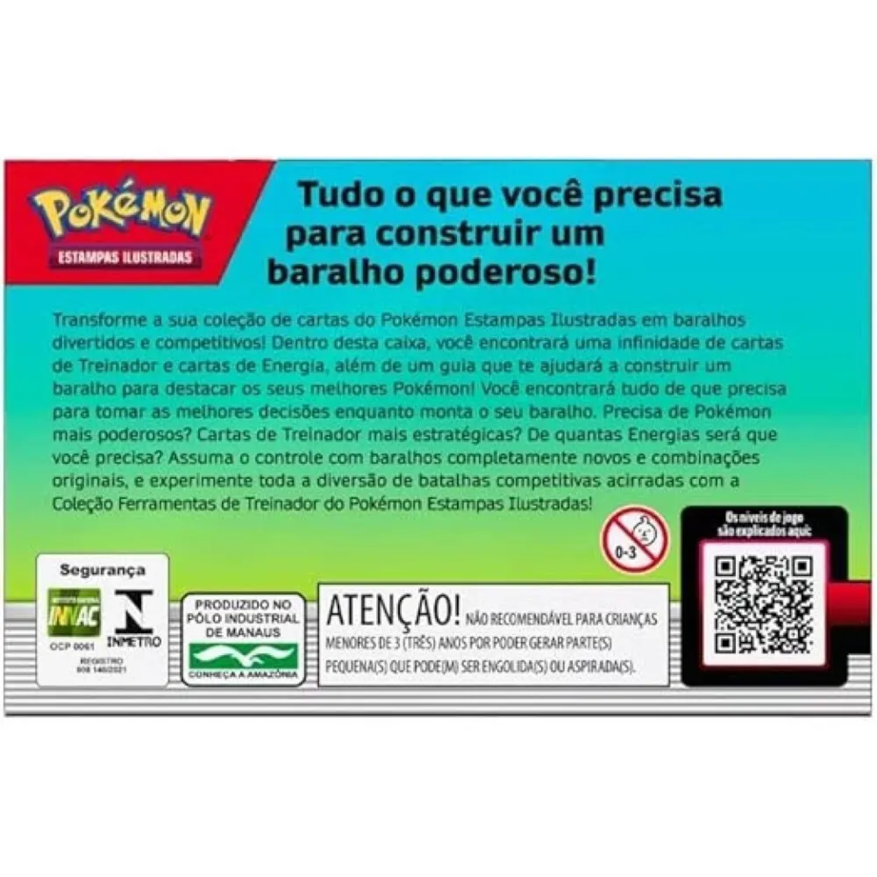 Esta caixa contém uma variedade de cartas de Treinador e cartas de Energia, além de um guia completo que auxiliará na elaboração de estratégias eficazes para destacar os melhores Pokémon do seu baralho. Com o conteúdo desta coleção, você terá as ferramentas necessárias para tomar decisões informadas sobre a escolha de Pokémon, Treinadores e Energias, garantindo que o seu baralho seja forte e equilibrado.