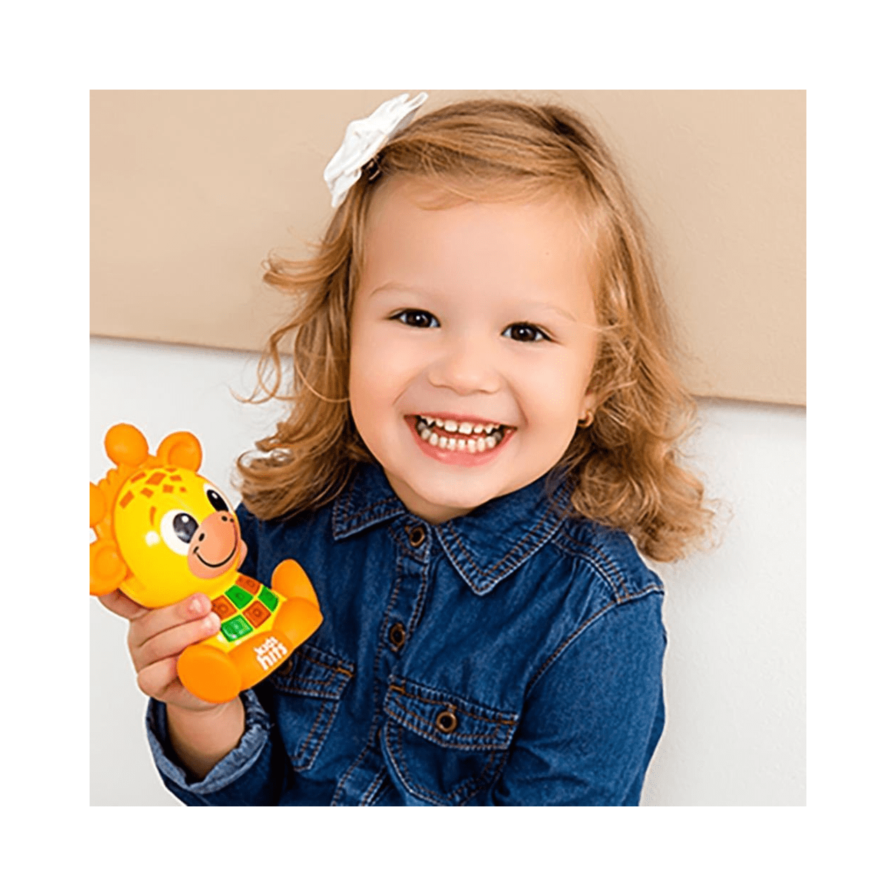 A Girafa Interativa Musical vai encantar os pequenos com suas cores vibrantes, botões iluminados e texturas agradáveis ao toque, despertando a curiosidade e estimulando os sentidos.