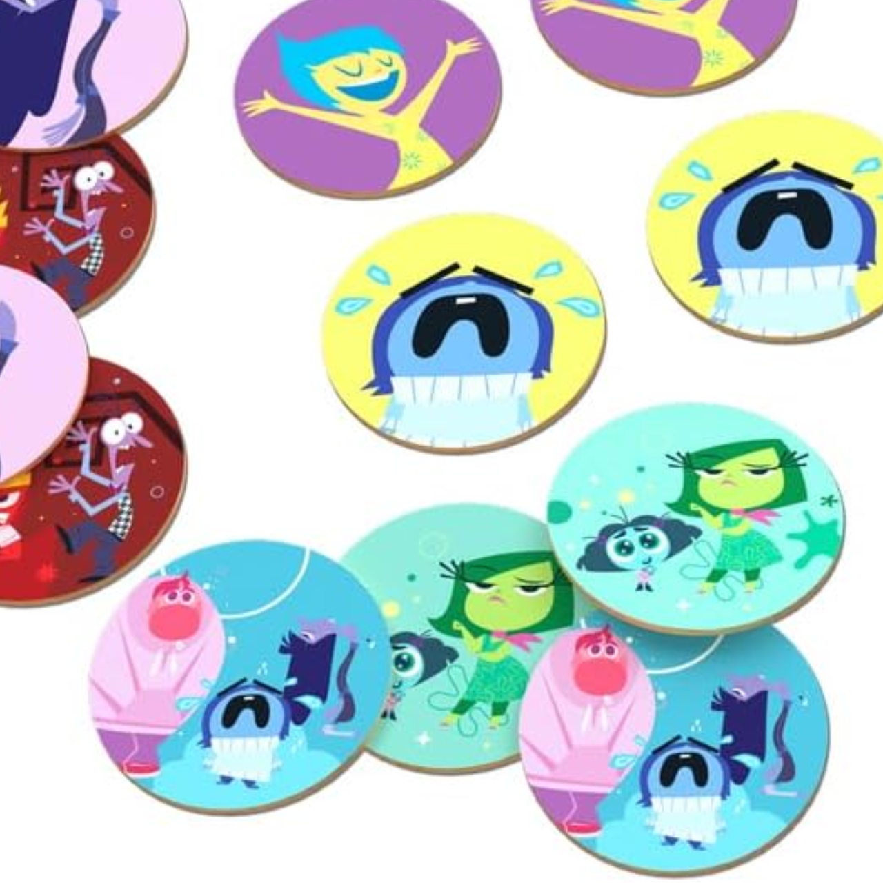 Com base no filme Divertida Mente 2, o jogo apresenta cartas coloridas com os personagens e suas emoções.