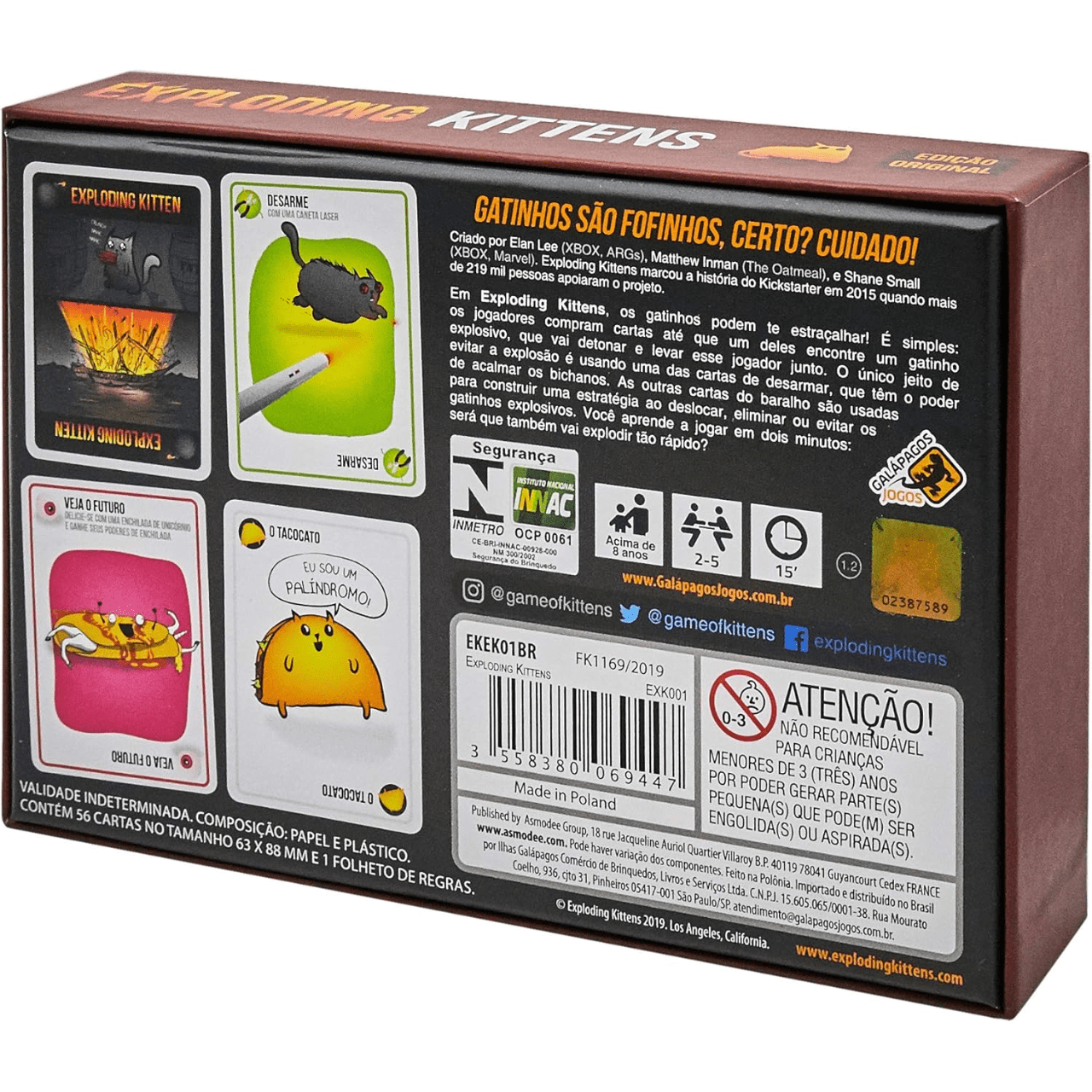 Conteúdo da embalagem: 56 Cartas e 1 Folheto de Regras.