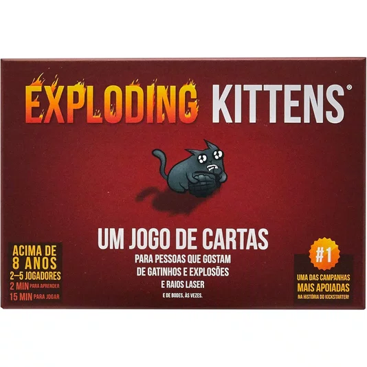 Em Exploding Kittens, cada jogador recebe cartas e, na sua vez, pode usar algumas delas para atrapalhar os outros ou se proteger. Depois disso, precisa comprar uma carta do baralho. O problema é que nele existem cartas de “exploding kitten”: se você pegar uma, perde o jogo imediatamente.