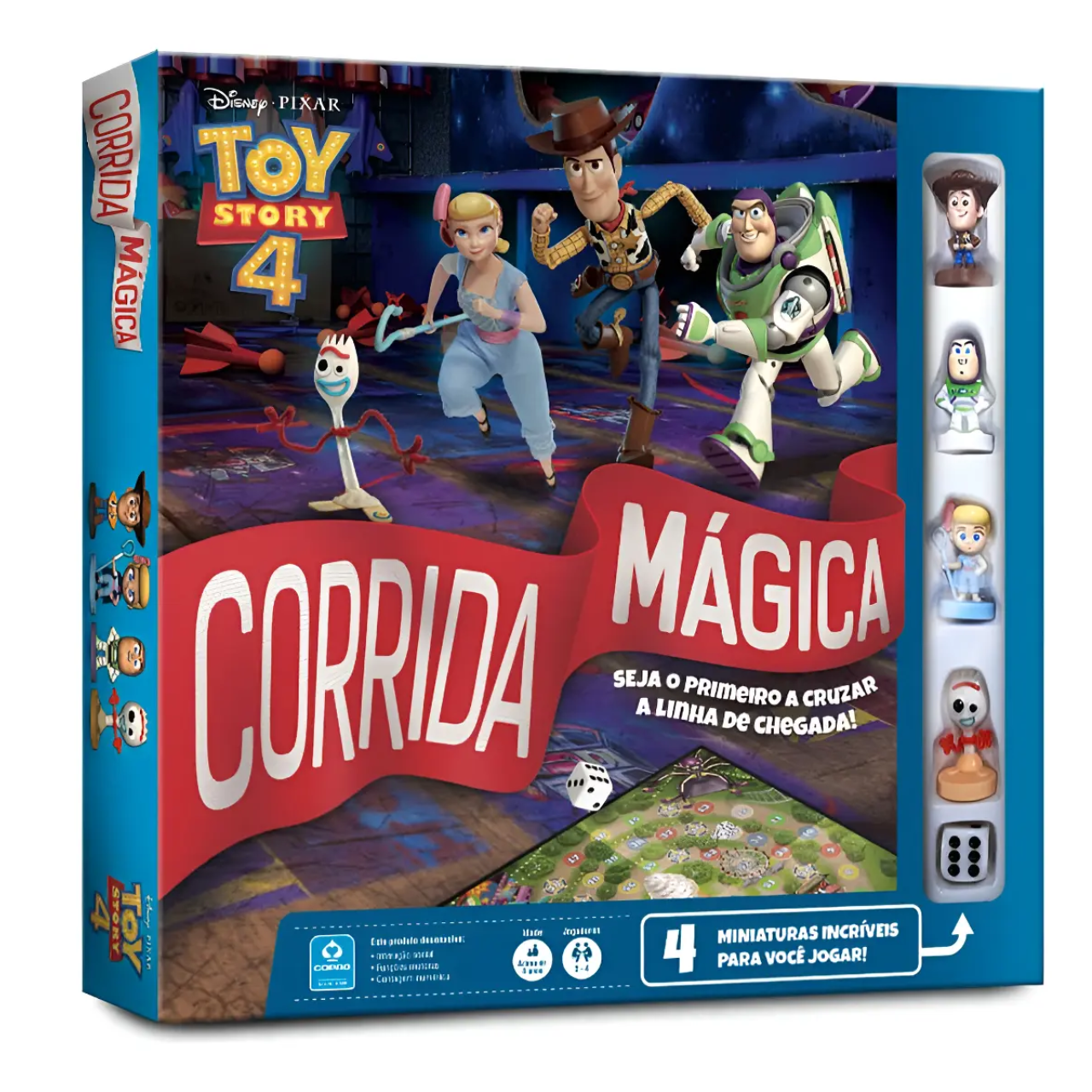 O jogo Corrida Mágica é uma aventura divertida em que os jogadores competem para chegar primeiro à linha de chegada ao lado de personagens como Buzz, Woody, Betty e Garfinho. A cada rodada, os participantes lançam o dado e avançam pelo tabuleiro, enfrentando surpresas pelo caminho.