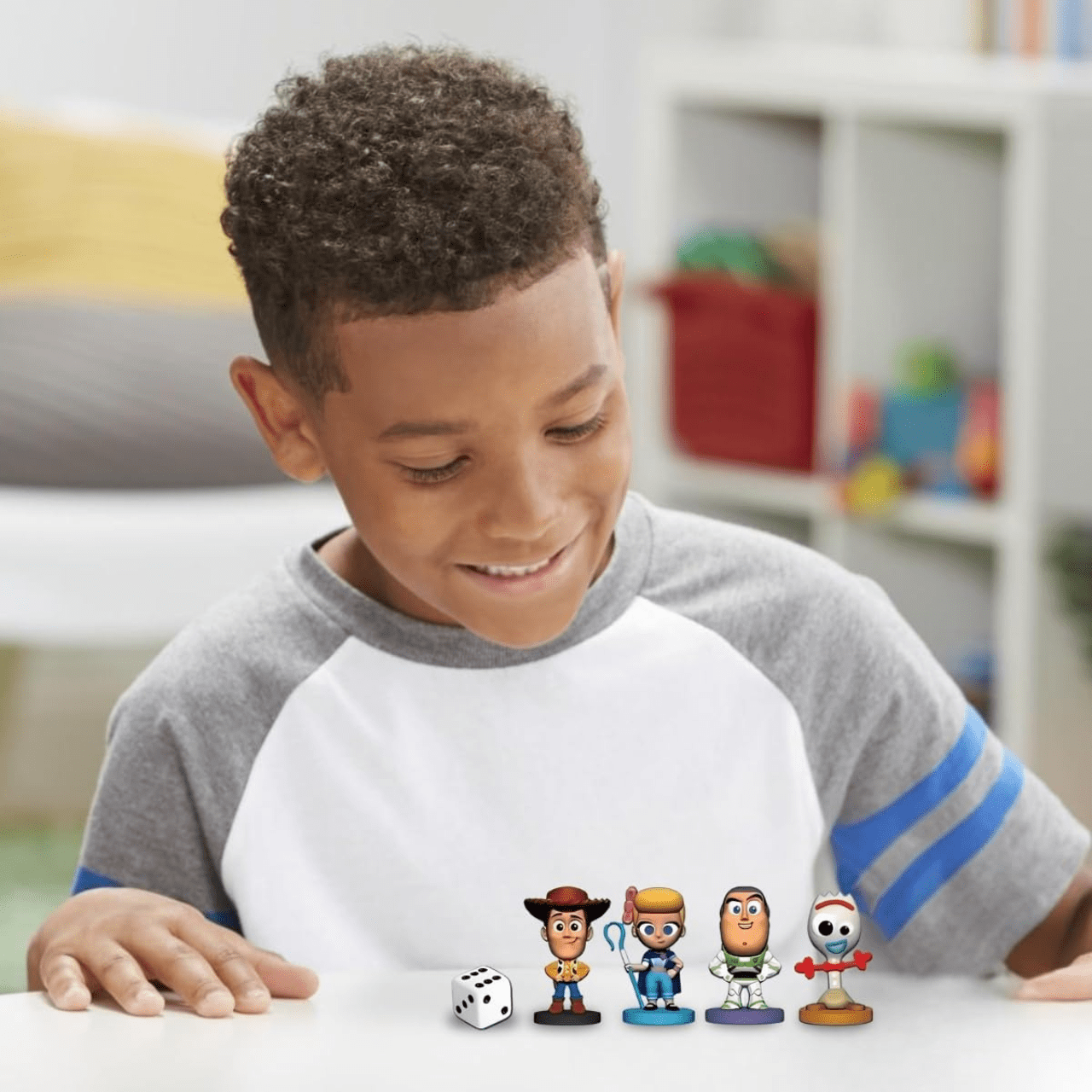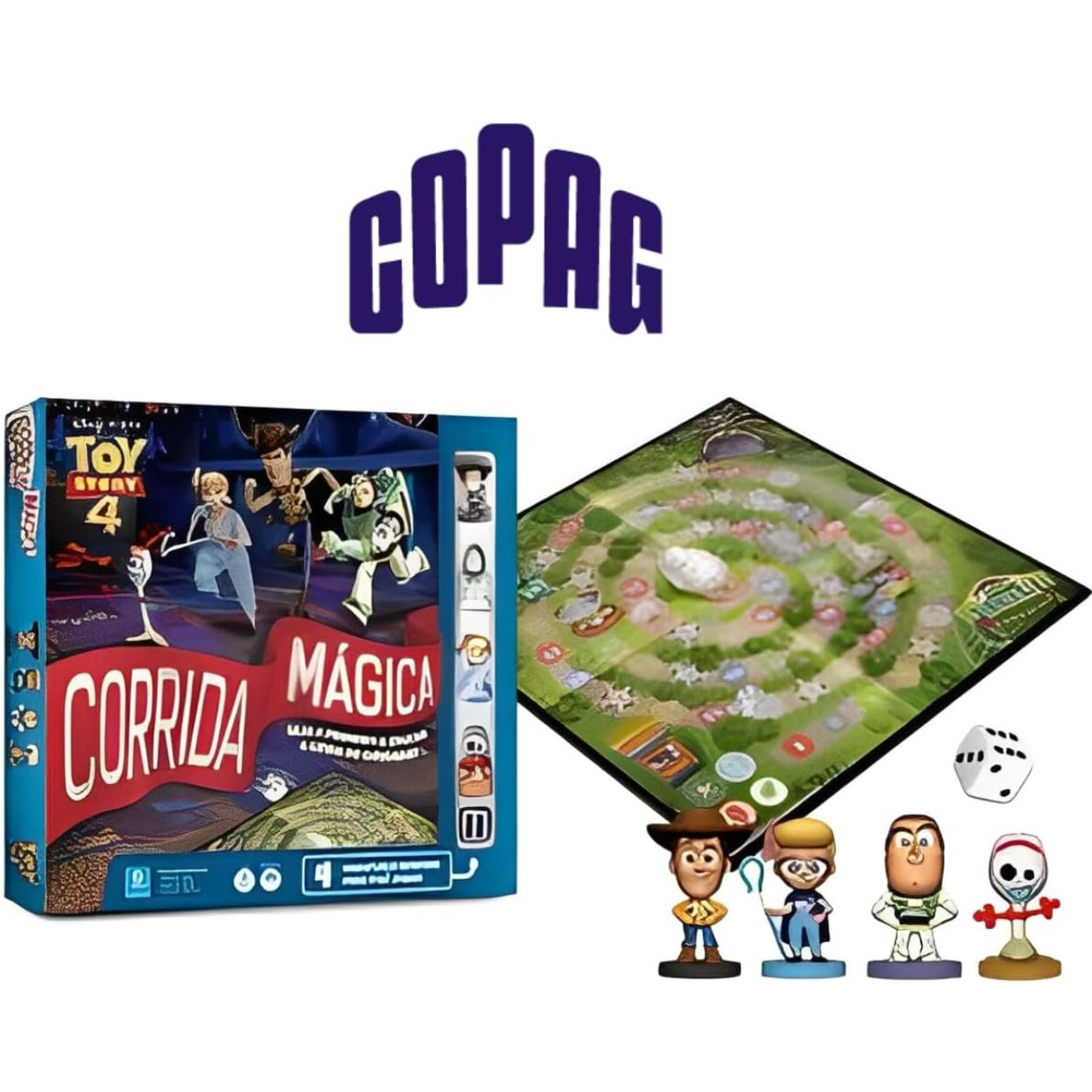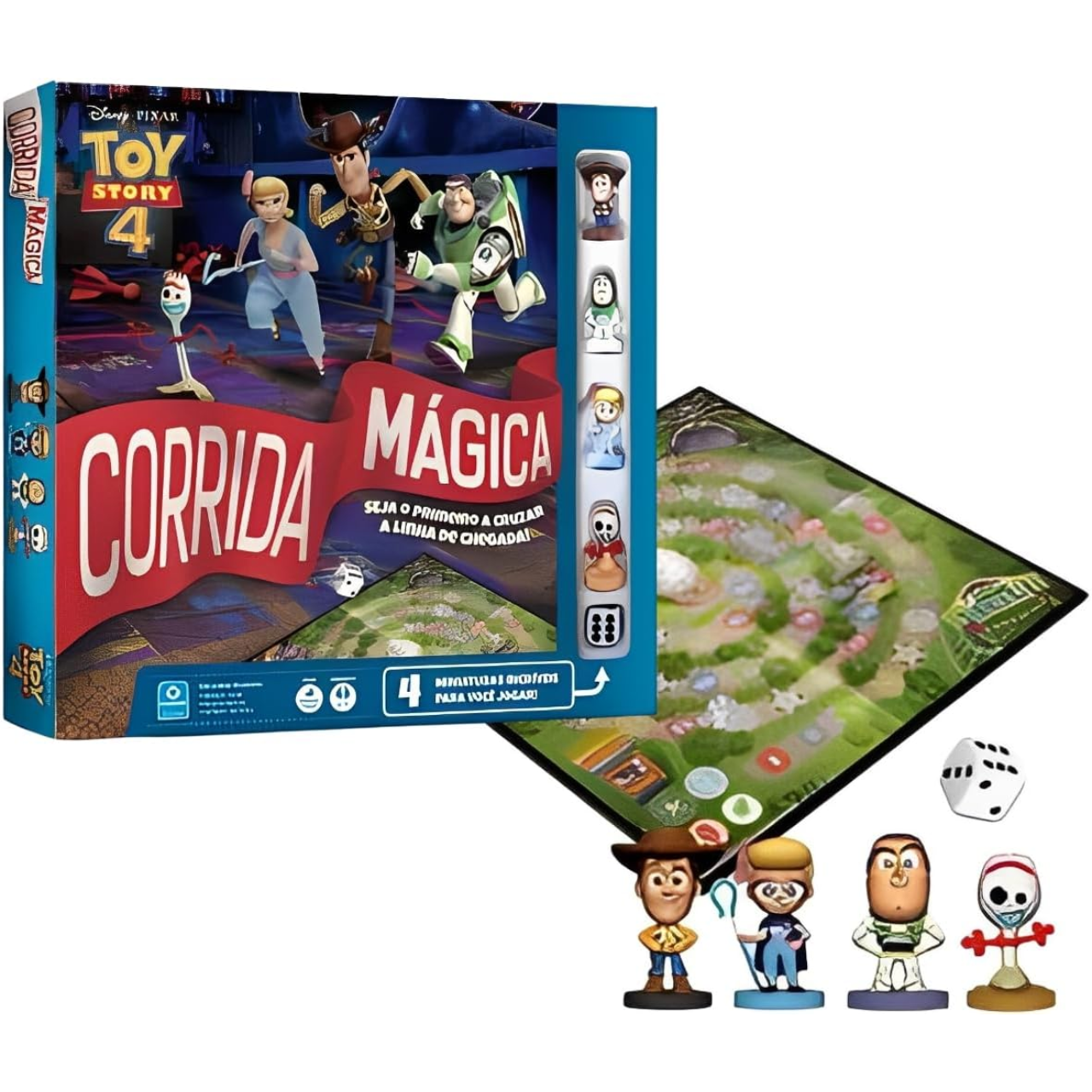 O conjunto inclui 4 miniaturas personalizadas, 1 tabuleiro e 1 dado de seis lados. Simples e dinâmico, o jogo é ideal para momentos de diversão em grupo, trazendo a magia e o humor do universo Toy Story para uma corrida cheia de reviravoltas.