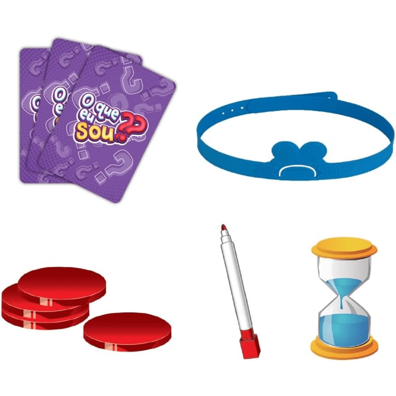 Cada jogador coloca uma faixa na cabeça com uma carta misteriosa — e o desafio começa: O que eu sou? Com base em mímicas, desenhos e dicas dos oponentes, você precisa adivinhar sua identidade antes que o tempo acabe!