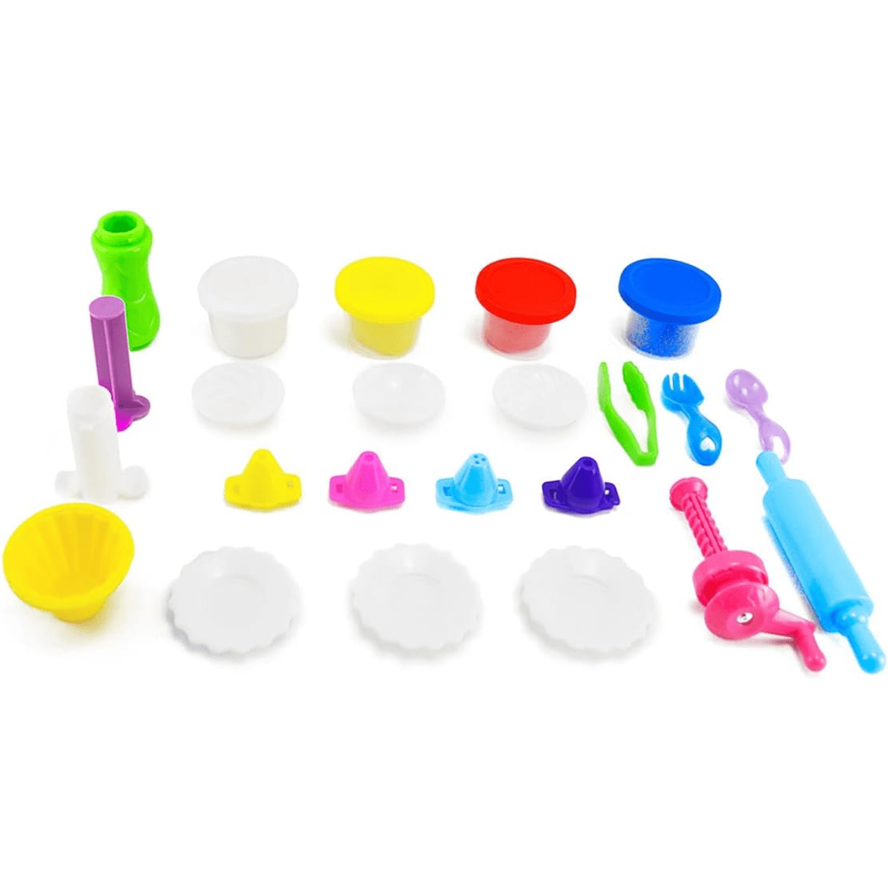 O conjunto vem com 4 potes de massinha de 50g cada e acessórios para modelagem, permitindo que os pequenos criem diversos pratos e se divirtam como verdadeiros cozinheiros ou confeiteiros. A brincadeira estimula a imaginação, a criatividade e o faz de conta de forma divertida.
