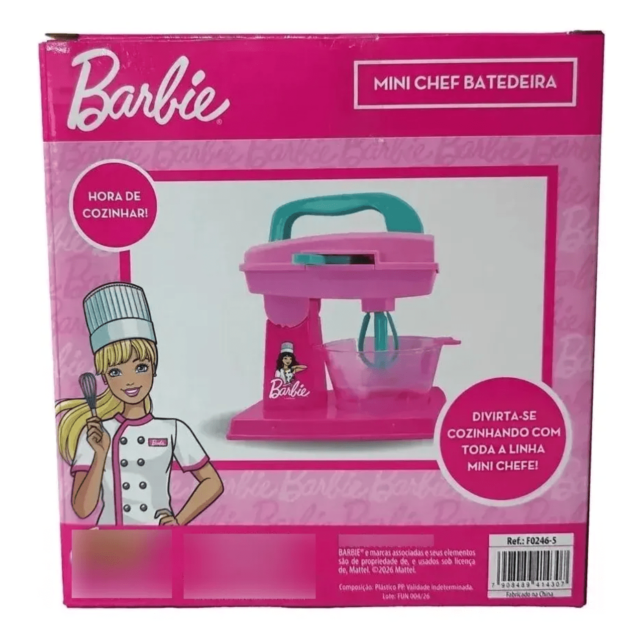 A Mini Chef Batedeira é o brinquedo ideal para crianças que adoram explorar o mundo da cozinha de forma divertida e criativa. Com um design encantador inspirado no universo da Barbie, ela permite que os pequenos preparem receitas imaginárias, misturem ingredientes e criem suas próprias aventuras cheias de sabor e fantasia.