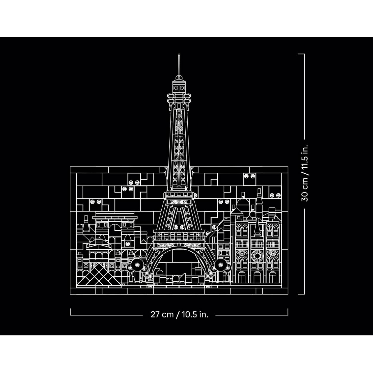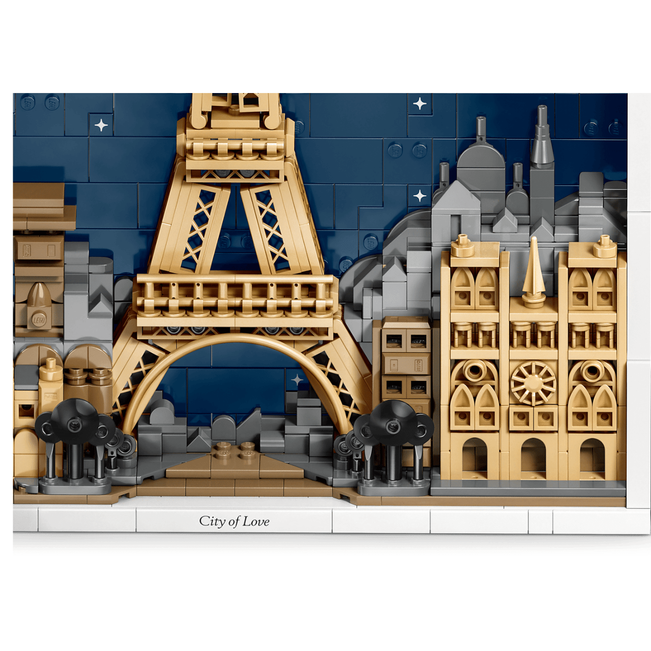 Com 958 peças, o modelo destaca construções icónicas como a Torre Eiffel, a Catedral de Notre-Dame de Paris, o Arco do Triunfo e o Museu do Louvre. Finalizado com a inscrição “City of Love” ( Cidade do Amor) e uma moldura construída com peças.