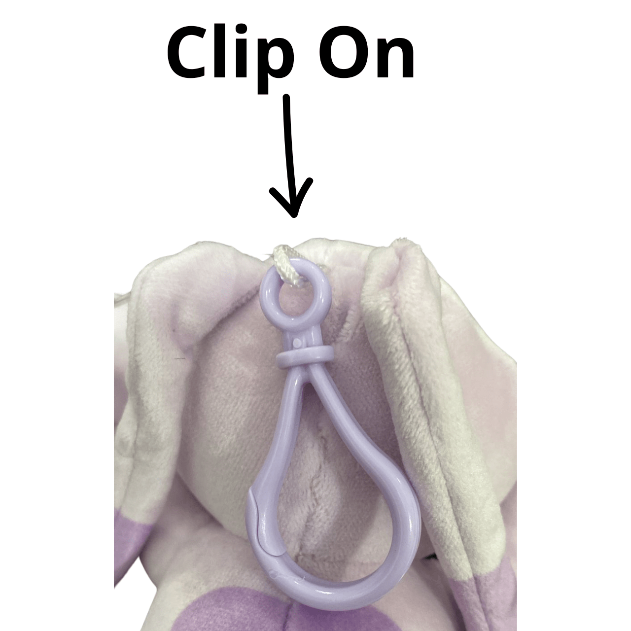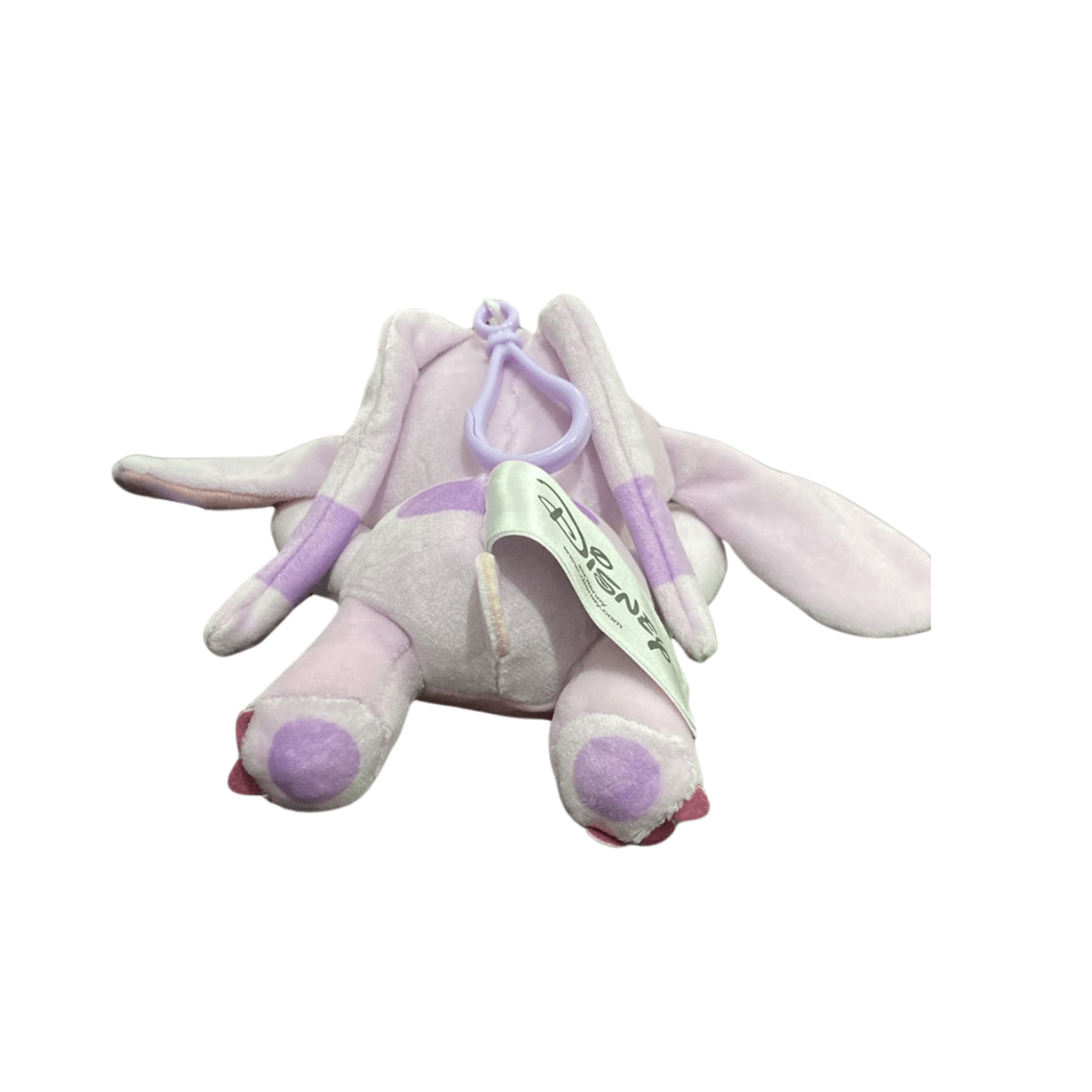 A pelúcia tem aproximadamente 12 centímetros de altura e possui um mecanismo de presilha que pode ser fixado em itens como mochilas ou chaveiros. É feita em material de alta qualidade com toque macio.
