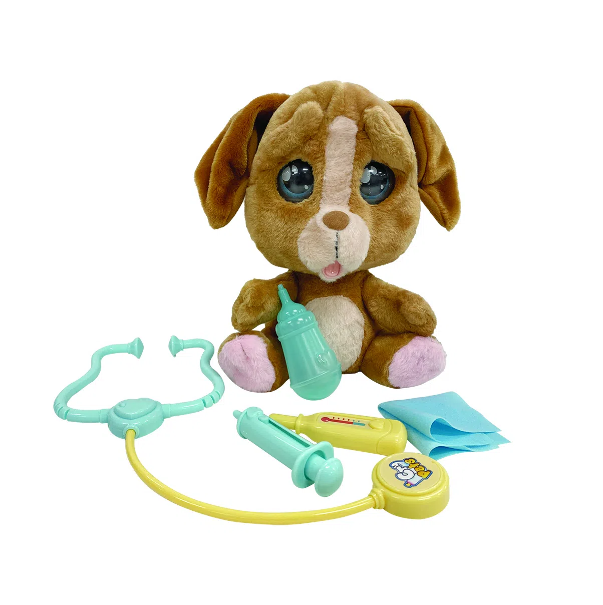Conteúdo da embalagem: 1 Pelúcia Cry Pets, 1 mamadeira, 1 toalhinha, 1 estetoscópio, 1 termômetro e 1 injeção de brinquedo