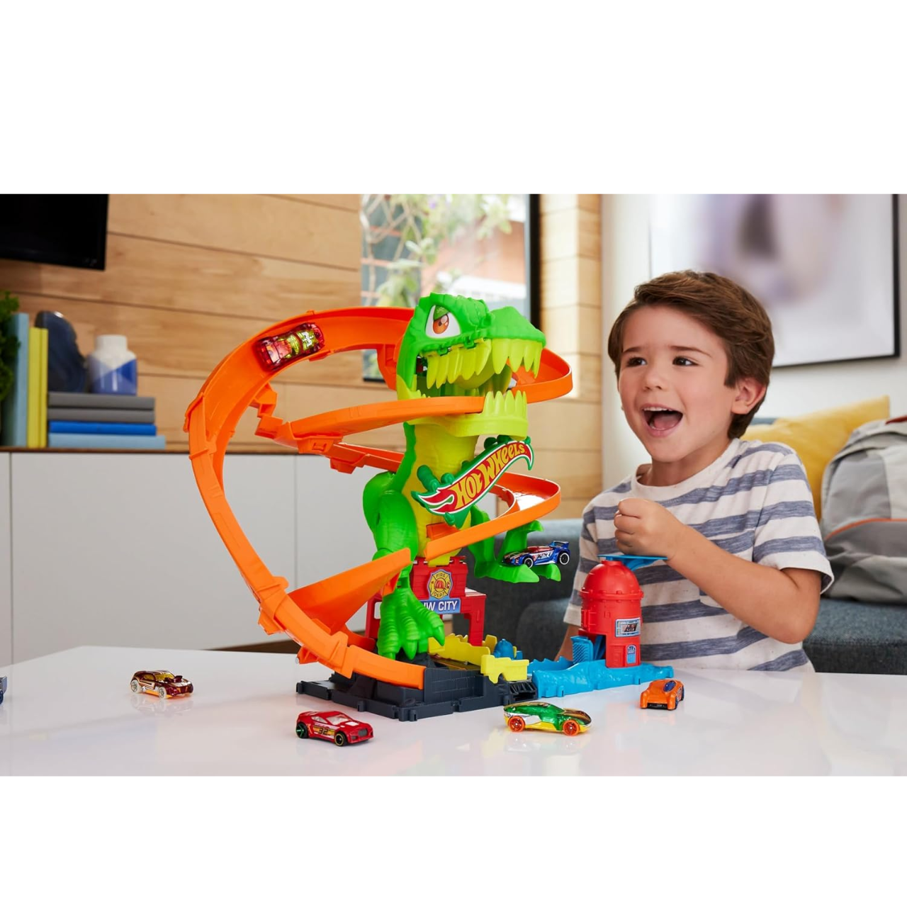 Este conjunto é perfeito para quem adora dinossauros, ação e Hot Wheels, trazendo a cidade à vida com cada manobra. Vença o T-Rex e prove sua coragem em Hot Wheels City!