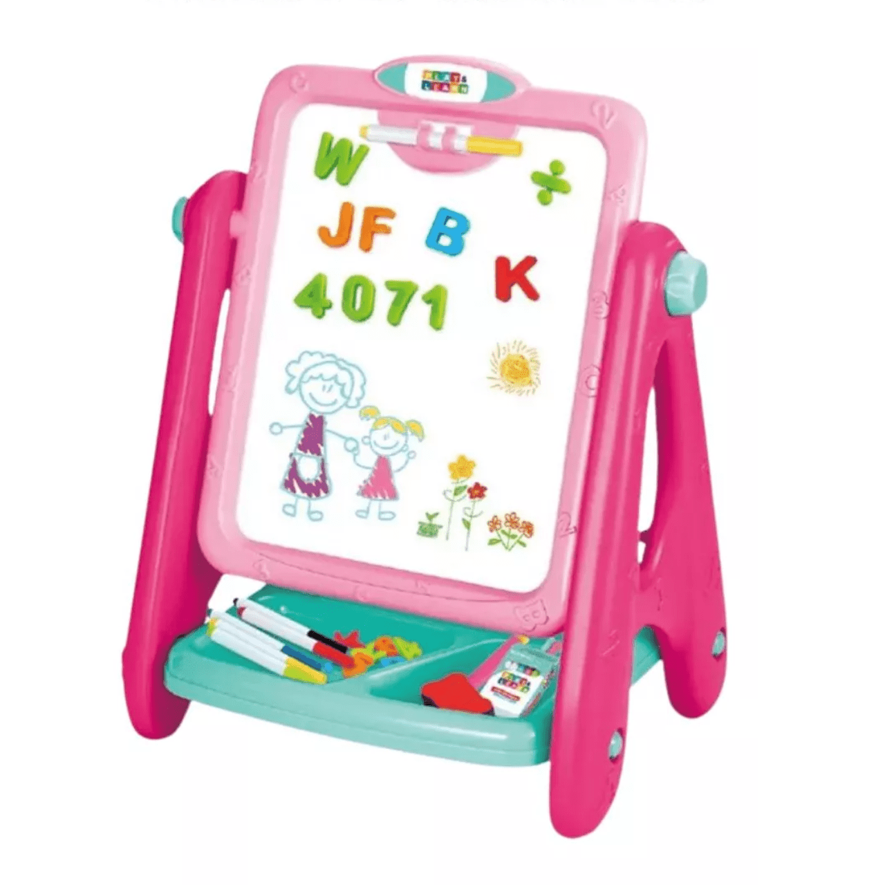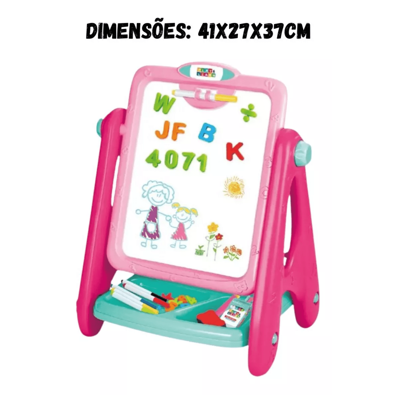 - A Lousa Magnética possui rotação de 360 graus e acompanha canetinhas, giz de cera, números e letras em ímã, além de um apagador.