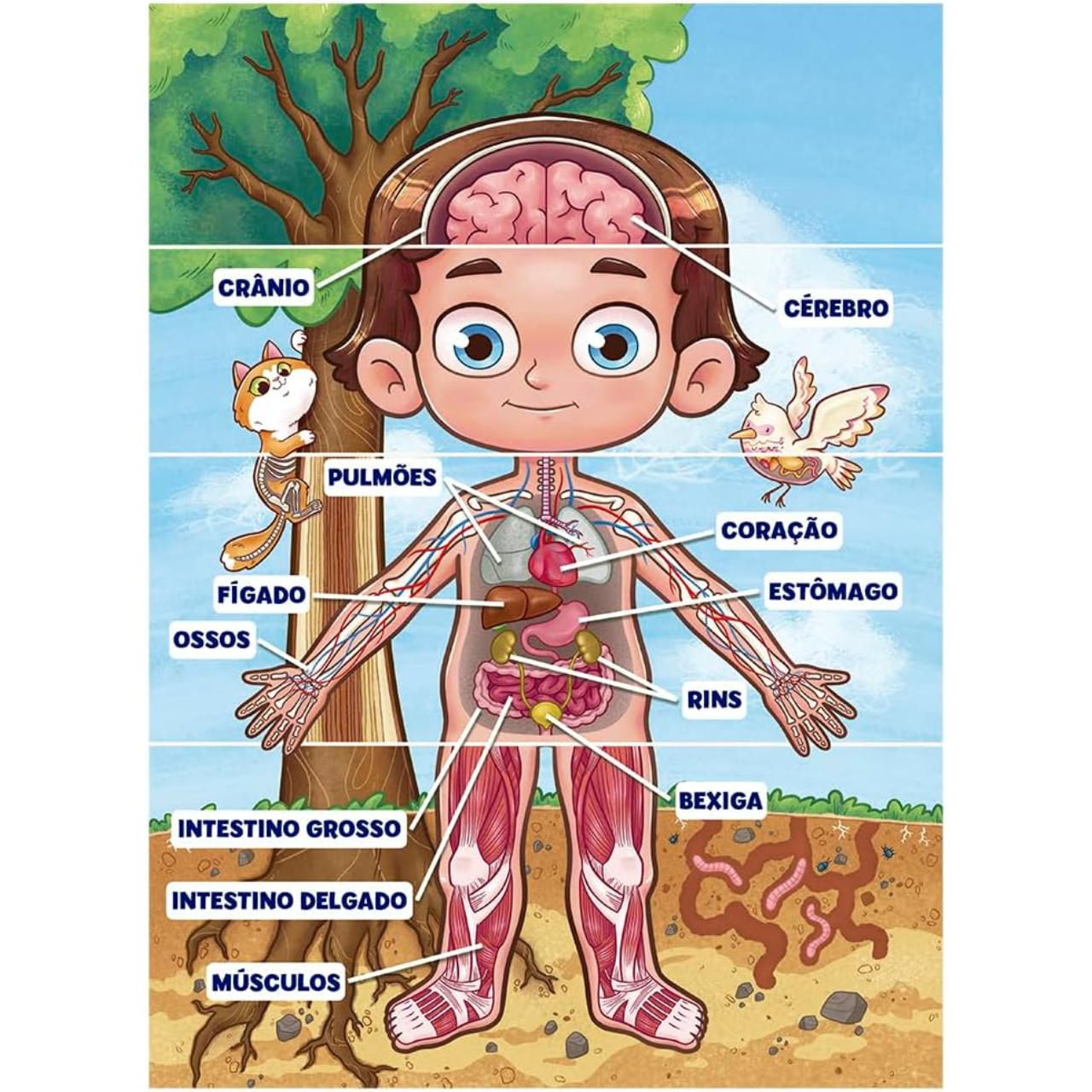 Transforme o aprendizado em uma aventura divertida com este quebra-cabeça educativo sobre o Corpo Humano. Ao montar a imagem, as crianças descobrem de forma lúdica e colorida o que existe dentro do corpo.