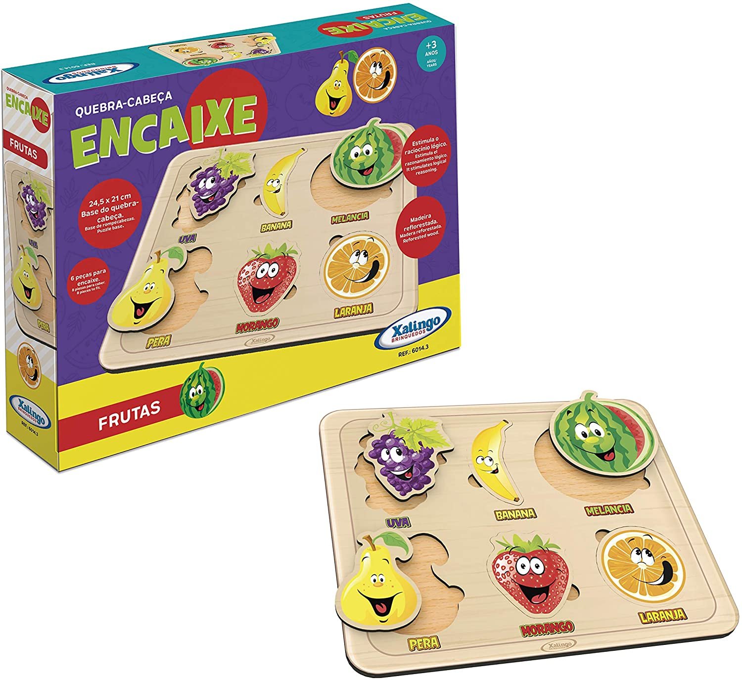 O quebra-cabeça Encaixe Frutas Xalingo é composto de 6 peças em madeira para encaixar o contorno correspondente no tabuleiro e ensina também o nome por extenso de cada fruta. As crianças podem se familiarizar com a alimentação saudável.