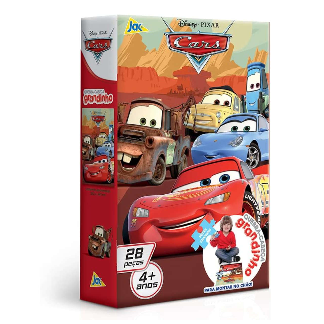 Prepare-se para muita diversão com este quebra-cabeça de chão de 28 peças, inspirado no famoso filme Carros! As crianças vão se encantar ao montar uma imagem vibrante de seus personagens favoritos, como Relâmpago McQueen, Mate e outros amigos da pista. Com uma imagem final de 31 x 44,1 cm.
