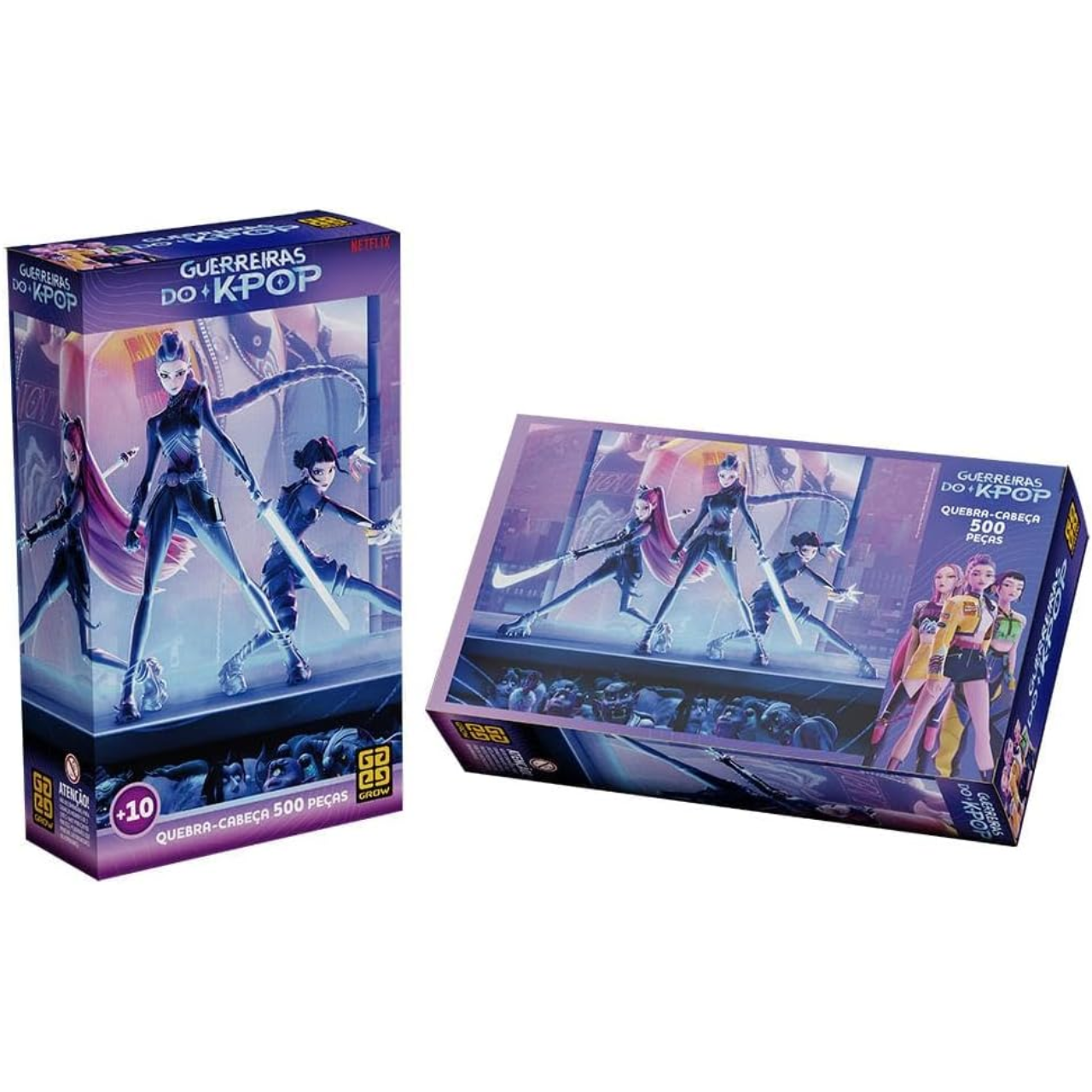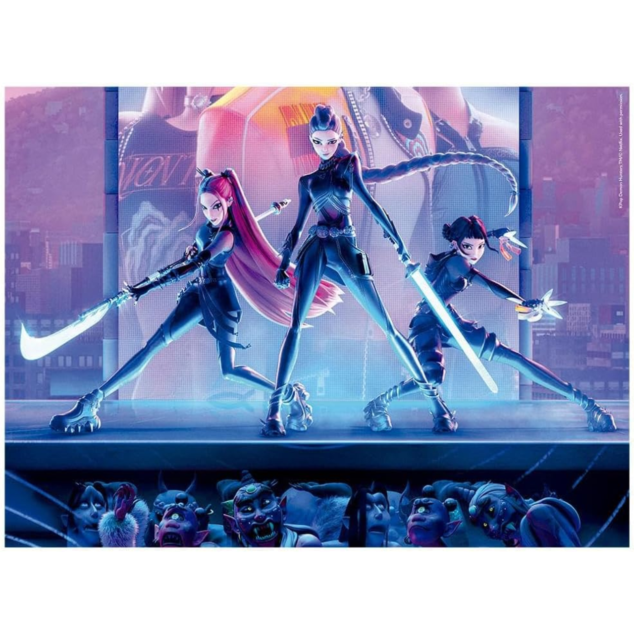 Mergulhe no universo das Guerreiras do K-Pop com este quebra-cabeças, inspirados na animação da Netflix. O grupo HUNTR/X, formado por Rumi, Mira e Zoey, vive uma vida dupla: no palco são estrelas do K-pop, mas fora dele se tornam corajosas caçadoras de demônios que usam a música para criar o Hanmoon, uma poderosa barreira mágica que protege o mundo das forças do mal.
