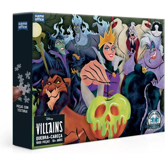Conteúdo da embalagem: 1 Quebra Cabeça Vilões Disney de 1000 Peças.
