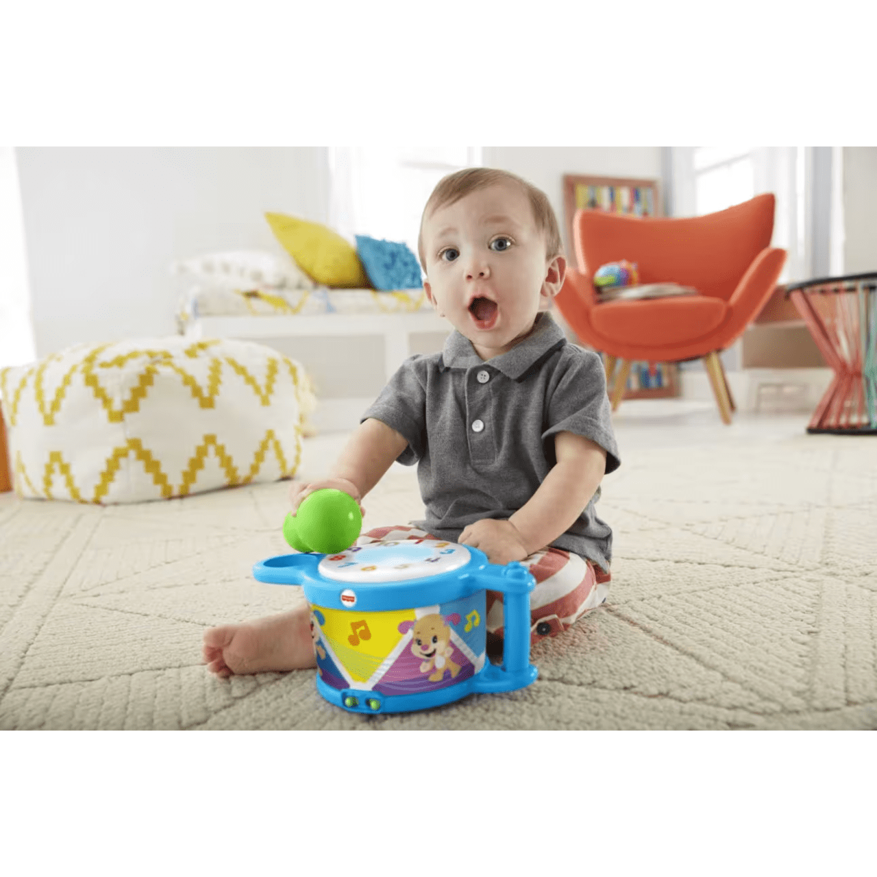 No Modo Aprendizado, ao tocar o tambor com a baqueta, o bebê ativa luzes, músicas e frases que ensinam cores e a contagem de 1 a 10. Já no Modo Música, o brinquedo toca músicas conhecidas e efeitos sonoros divertidos, promovendo a sensibilidade musical da criança.