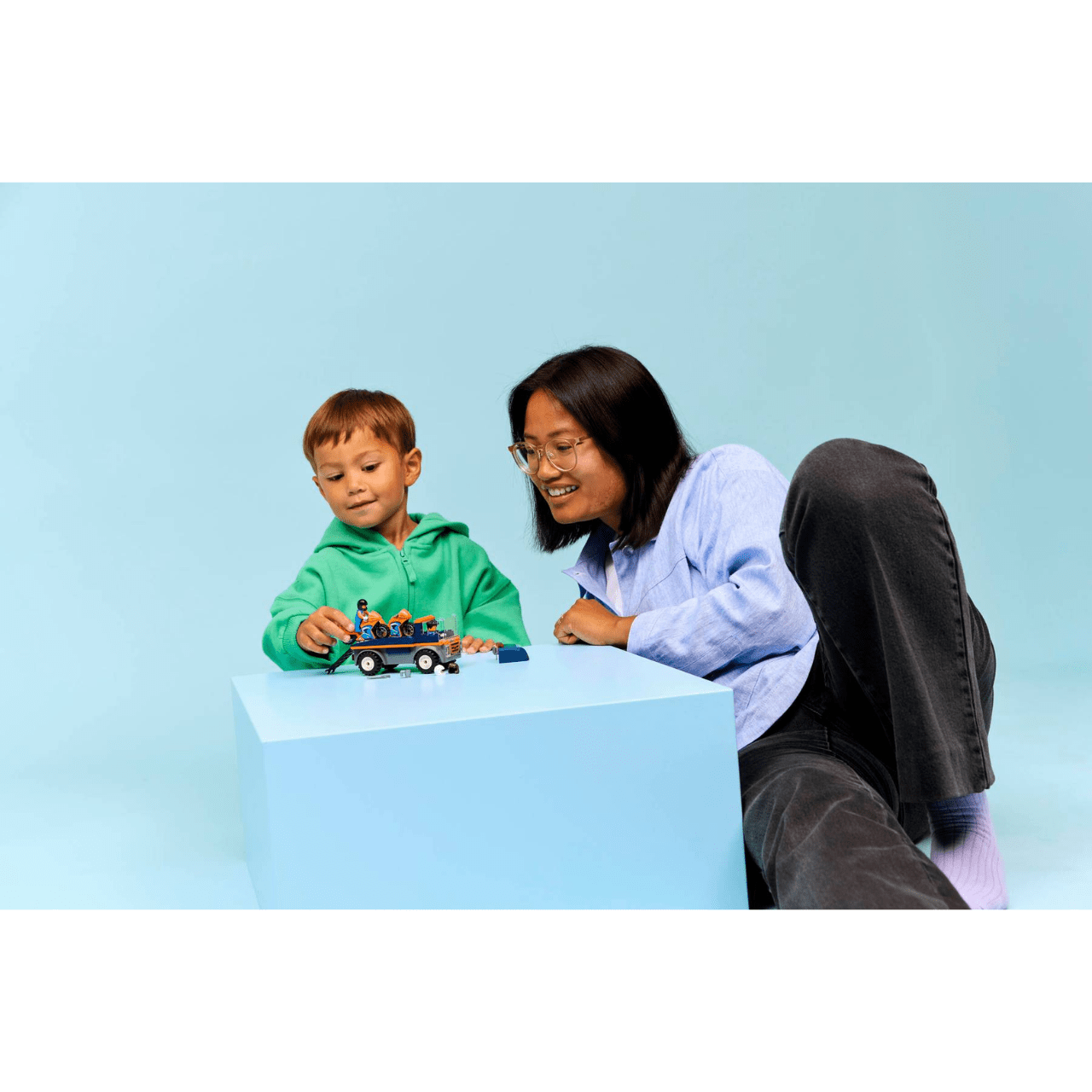 O Lego Transportador De Motocicletas é um conjunto ideal para crianças a partir de 4 anos que adoram veículos e corridas. Ele inclui um caminhão prancha com pneus largos, 2 motos esportivas e 2 pilotos com capacetes para criar aventuras cheias de ação.
